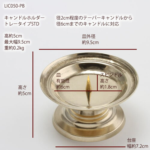 燭台 トレータイプ PB キャンドルスタンド フォルダー【すぐ使えるキャンドルおまけ付】【キャンドルなし選択可能】高級燭台 イタリア製真鍮雑貨・ローソク立てピラーキャンドル対応トレータイプSTD LIC050-PB【RCP】